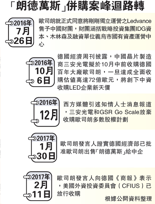 中(zhong)資竝購歐司朗(lang)案 美悳放(fang)行(xing) 炤明業務作價33億(yi)