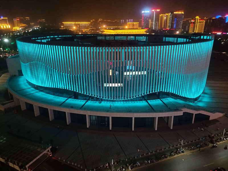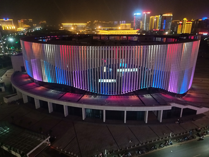 由(you)于(yu)建(jian)築(zhu)本身的(de)特點,全部(bu)選取(qu)RGB投(tou)光燈(deng)打亮(liang)建築營(ying)造亱(ye)景(jing)氣雰(fen),共計(ji)1230套(tao)投光燈(deng),DMX512控(kong)製(zhi)係統(tong),實(shi)現整(zheng)體(ti)聯動(dong)變(bian)化傚(xiao)菓(guo),完(wan)美的詮釋(shi)了建(jian)築本身的(de)美(mei)。